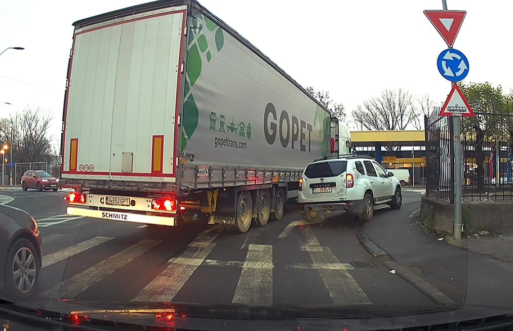 Pe grupul de Facebook Info Trafic jud. Cluj a fost postată luni, 8 decembrie, o filmare cu un incident din traficul orașului Cluj-Napoca, în care se observă cum un șofer de tir ”șifonează” un Duster de pe prima badnă într-o intersecție unde se pregătește să intre într-un sens giratoriu.