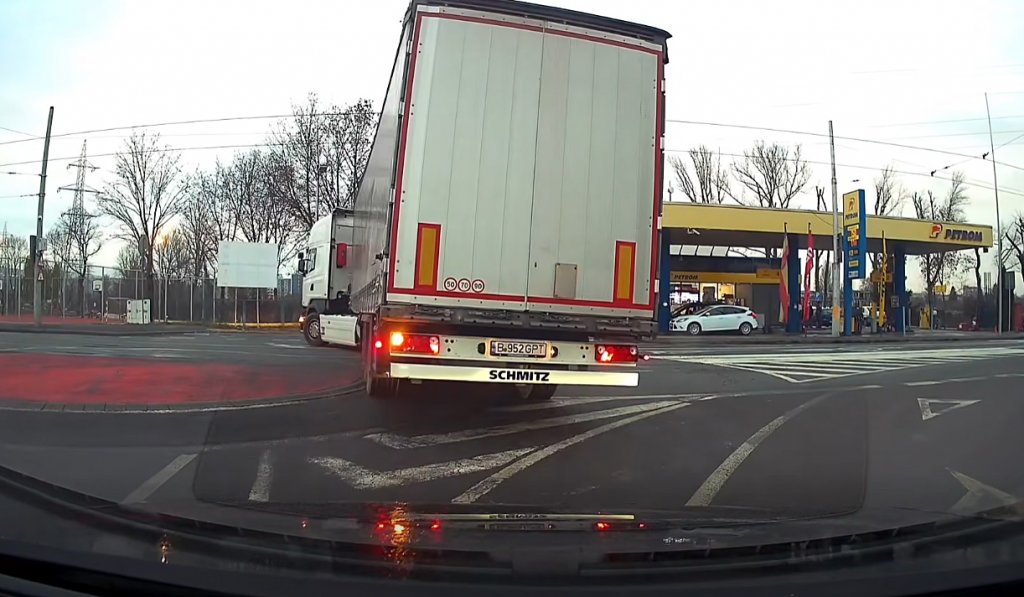 O filmare din traficul orașului Cluj-Napoca le amintește șoferilor de ce e bine să fie precauți când se află în apropierea vehiculelor cu gabarit mărit.