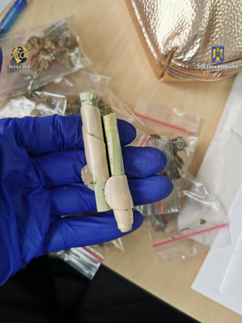Au fost puse în aplicare 7 mandate de percheziție domiciliară, în județul Cluj, fiind descoperite și ridicate peste 400 de grame de canabis (muguri), disimulate în interiorul unui corp de canapea, 2 pungi cu substanță cristalină (3-CMC), comprimate de Diazepam, 4 telefoane mobile, un cântar de mare precizie, 3 dispozitive amovibile de stocarea datelor, 8.000 de lei și mai multe ustensile folosite pentru consumul de droguri, toate cu urme de substanță.