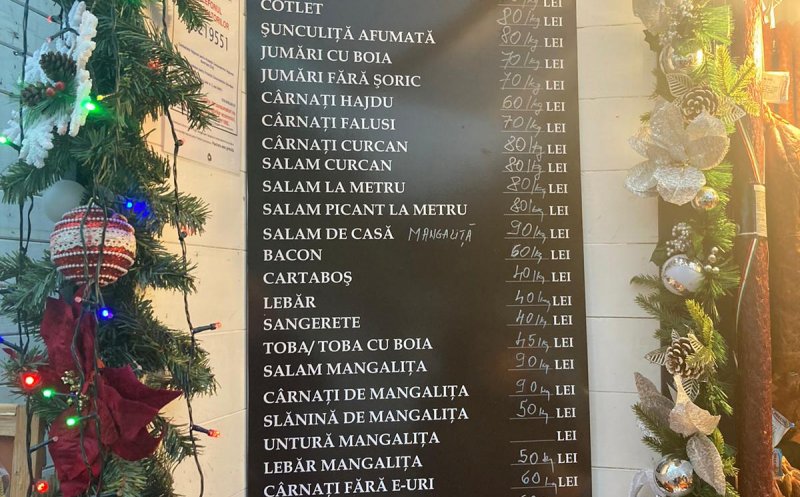 "Suntem de la 10 la 22 deschiși, zilnic. Avem produse proaspete de porc, doriți să gustați? Am fost și în anii trecuți, aveam căsuța pe cealaltă parte", a declarat doamna de la căsuța cu slănini și cârnați, unde stăteau la coadă circa 6 persoane, într-o după masă de luni.