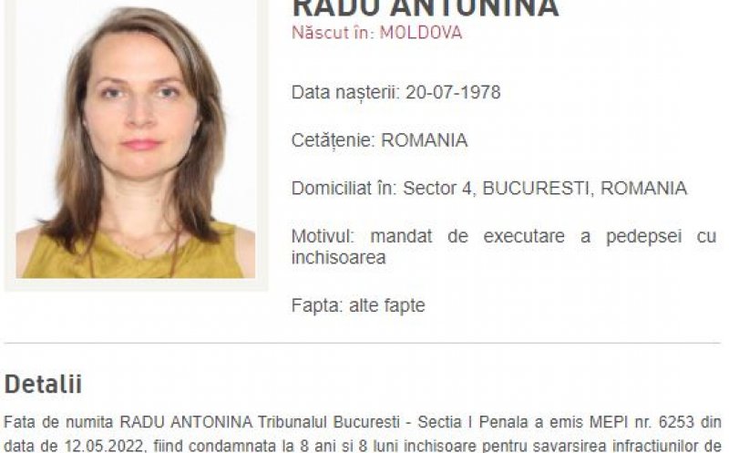 Poliția Română a dat-o vineri în urmărire generală pe Antonina Radu, unul dintre cei doi pompieri condamnaţi în dosarul Colectiv, după ce aceasta nu a fost găsită la domiciliu.
