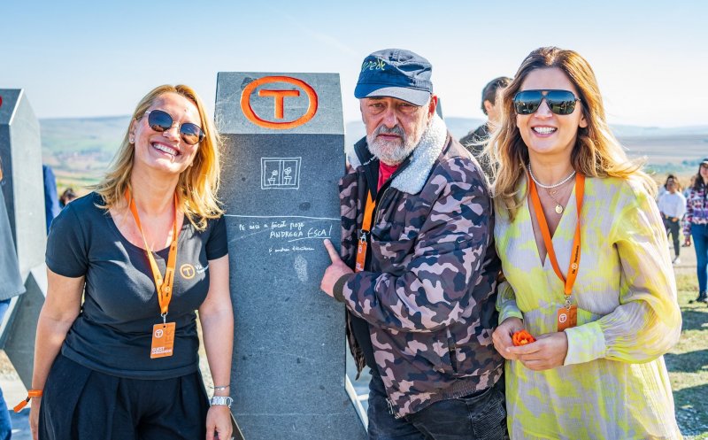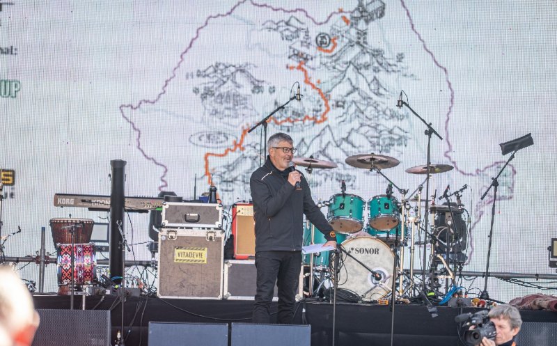 Alin Ușeriu, coordonator proiect: „Ca să iubești România, trebuie să îi dai o șansă, să o iei la pas, să mergi din comunitate în comunitate, care e filozofia acestui proiect. El trece prin 400 de comunități pe diagonală, 107 unități administrativ teritoriale, 1.400 de km, la fiecare km are o bornă de andezit sculpatată”.
