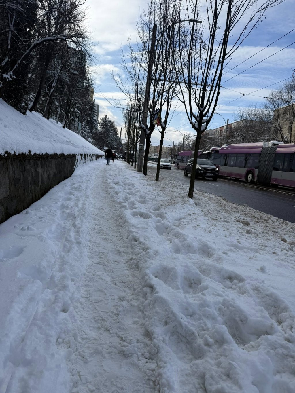 Nimeni nu se înghesuie să curețe zăpada de pe trotuarele din Cluj-Napoca unde nu sunt arondate nici blocuri, nici spații comerciale în zonă, iar pietonii efectiv înoată prin nămeți ca să ajungă fie în stațiile mijloacelor de transport, fie la cumpărături, fie direct la Ortopedie.