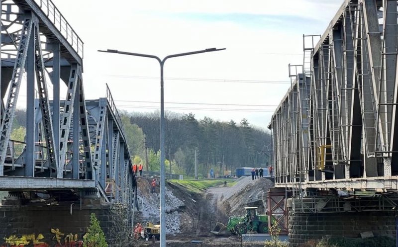 Foto Pod feroviar din Ucraina, RECONSTRUIT ÎN 29 DE ZILE, după ce a fost distrus de bombele ruşilor