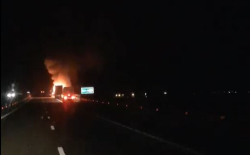 Un camion a luat foc, luni seara, pe Autostrada A10, la ieșire din Decea spre Cluj.