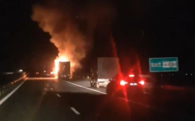 Foto INCENDIU pe A10, pe sensul spre Cluj. Un camion arde ca o torță
