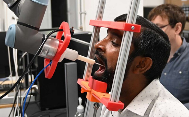 Un robot complet automatizat care face teste pentru depistarea coronavirusului a fost dezvoltat de cercetătorii de la Universitatea de sud din Danemarca şi Lifeline Robotics. Asistenţii medicali care se ocupă de obicei de recoltarea probelor pot evita astfel riscul de infectare.