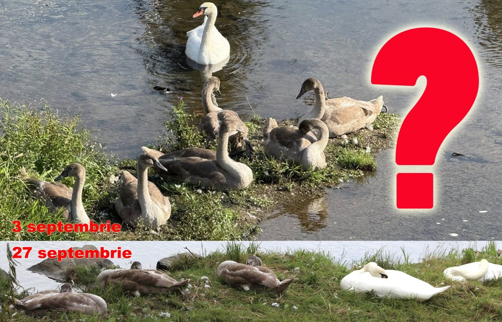 Însă când bobocii lebedelor de pe Someș aproape au ajuns la maturitate, din nefericire doar 3 mai sunt alături de părinți. Trei păsări au dispărut doar în luna septembrie. În data de 3 septembrie existau încă fotografii cu cei 6 pui lângă părinți, însă în câteva săptămâni ceva s-a întâmplat, iar familia de 8 membri a rămas în 5.
