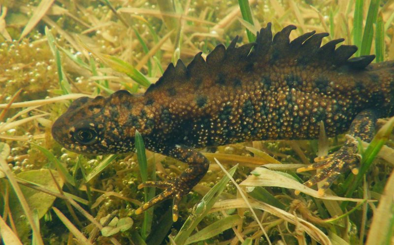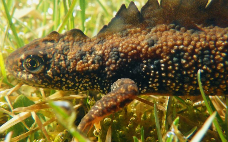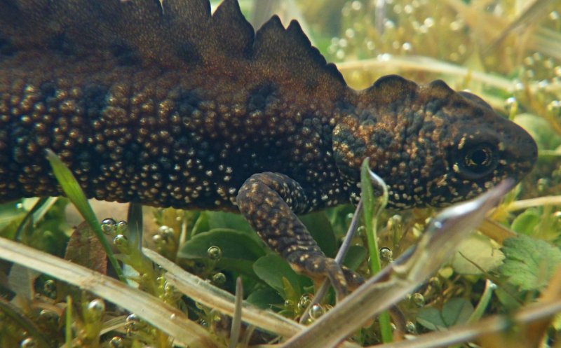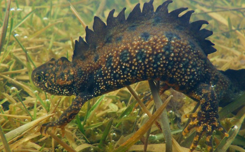 Un triton cu creastă (Triturus cristatus), a fost filmat la începutul lunii martie, în judeţul Cluj. Postarea a fost distribuită de Vlad Mureşan pe grupul de Facebook Fauna României - Conservare prin educaţie.