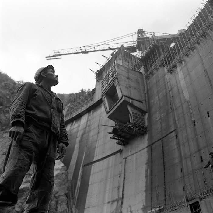 ”Se construia Tarnița acum 50 ani”, scrie Emi Burgh. alături de fotografiile din timpul când șantierele erau pline cu muncitori români călăuziți de ingineri și specialiști care se pricepeau să construiască.