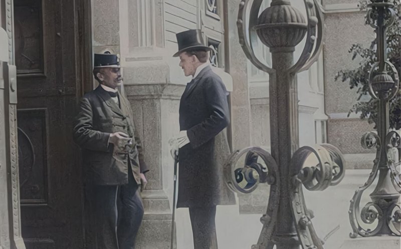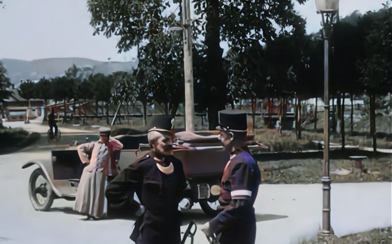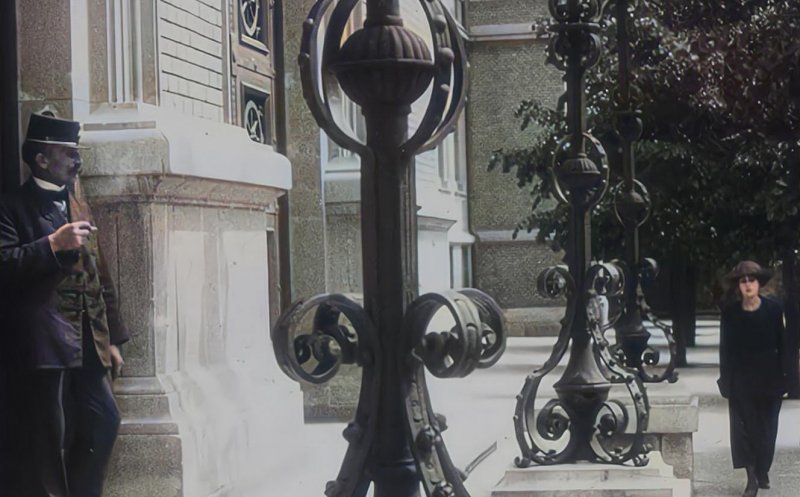 "Clujul ca in filme, in 1910: Universitatea si Parcul Central / podul Elisabeta. Cele mai vechi secvente video din Cluj sunt, aproape sigur, cele din filmele realizate sub conducerea (si finantarea) lui Janovics Jenő din anii 1910. Printre altii, directorul Casablanca Michael Curtiz au realizat filme in acea perioada la Cluj. Fotografiile sunt preluate din filmele lor (prelucrate si colorizate)'', scrie András Vajda.