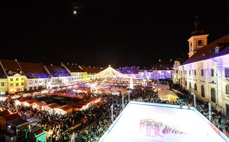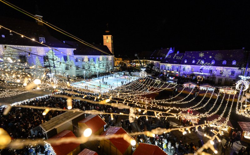 Târgul de Crăciun de la Sibiu s-a deschis oficial vineri seară, când au fost aprinse şi luminile festive. În acest an, târgul include şi un patinoar în aer liber, iar tradiţionalul brad de Crăciun a fost înlocuit cu unul reinterpretat, mai prietenos cu natura. Târgul de Crăciun de la Sibiu va fi deschis până în 3 ianuarie.
