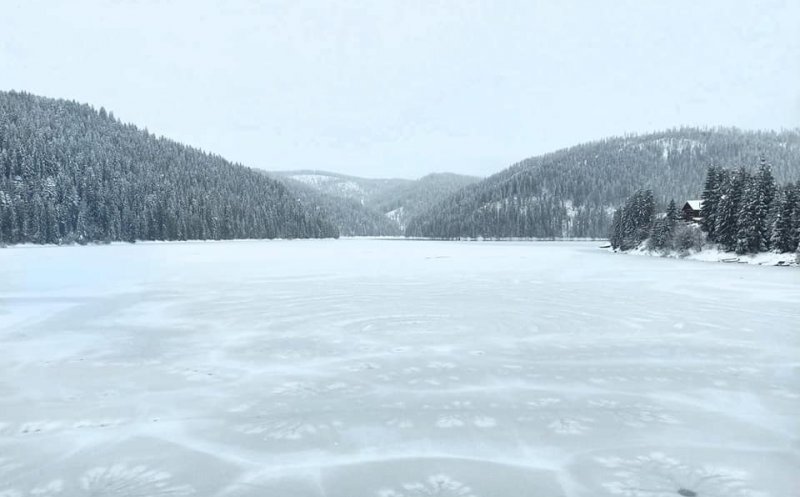 Din cauza temperaturilor foarte scăzute din ultimele zile, Lacul Beliș din Cluj a înghețat, iar pe suprafața acestuia s-a format o gravură naturală care oferă un peisaj de-a dreptul minunat.