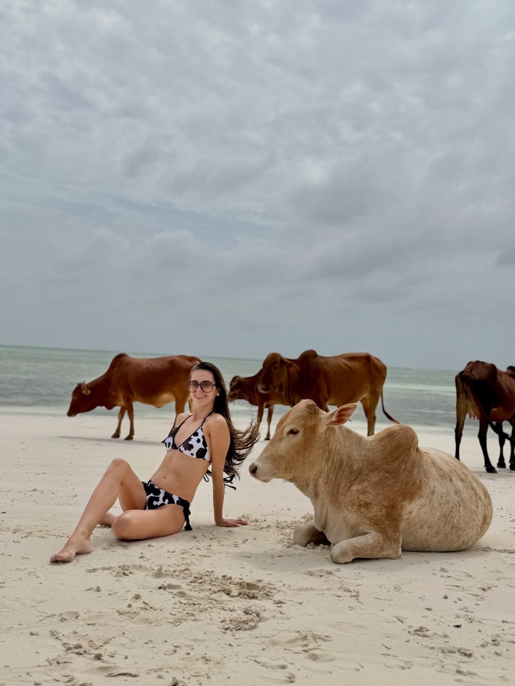 Georgiana Lobonț a ajuns în Tanzania în vacanță și și-a făcut o ședință foto cu o turmă de vaci pe o plajă în Zanzibar.
