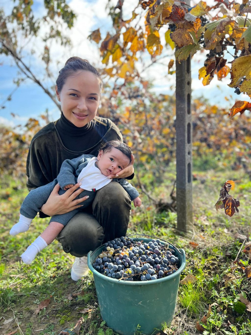 Vlăduţa l-a luat de curând pe Iair şi la vie, la cules de struguri, rememorând pe pagina de socializare aceeaşi perioadă din anul trecut, când avea doar găleata plină, nu şi braţele.