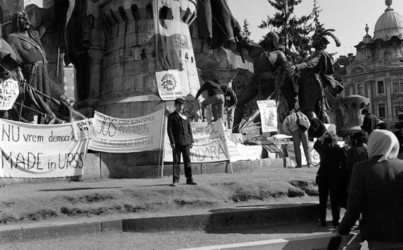 Foto Imagine din vechiul Cluj: Proteste în centrul Clujului, după Revoluția din 1989
