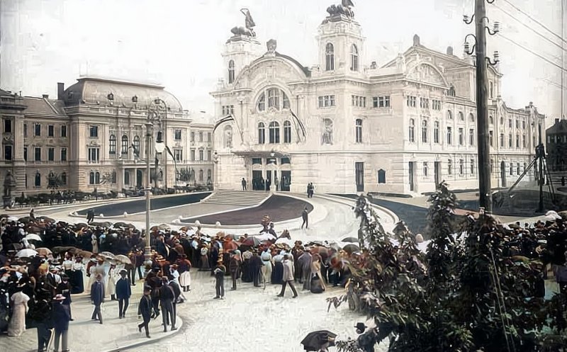 Piata de animale din locul unde se afla Teatrul National este desfiintata definitiv odata cu ridicarea noului Teatru Maghiar in 1907 (devenind Teatrul National Roman dupa 1919). Ultima cladire importanta ridicata inainte de primul razboi mondial a fost palatul camerei de comert si industrie (1910), actuala prefectura, cel mai frumos exemplu al stilului secesionist din Cluj.