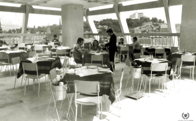 Magazinul ,,Central" cu Terasa de la etajul 3 și raioanele: Alimentara și Cosmetice de la parter, anii 1980. Ariva de fotografie: Clujul și clujenii