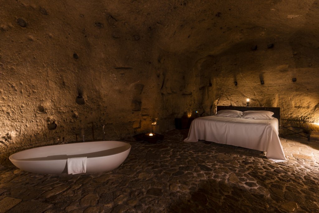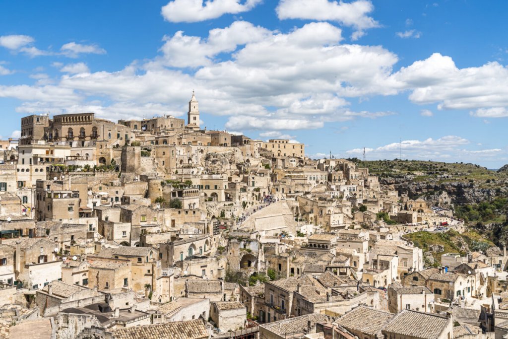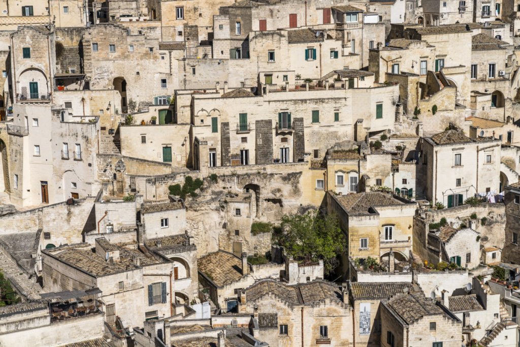 Sassi di Matera, un complex de locuințe rupestre antice, lăcașuri de cult și scări în spirală, toate sculptate direct în stâncile de calcar. Spre deosebire de grandioasele monumente de marmură din Roma, la Matera casele au fost create prin îndepărtarea rocilor, în loc să se construiască peste ele.