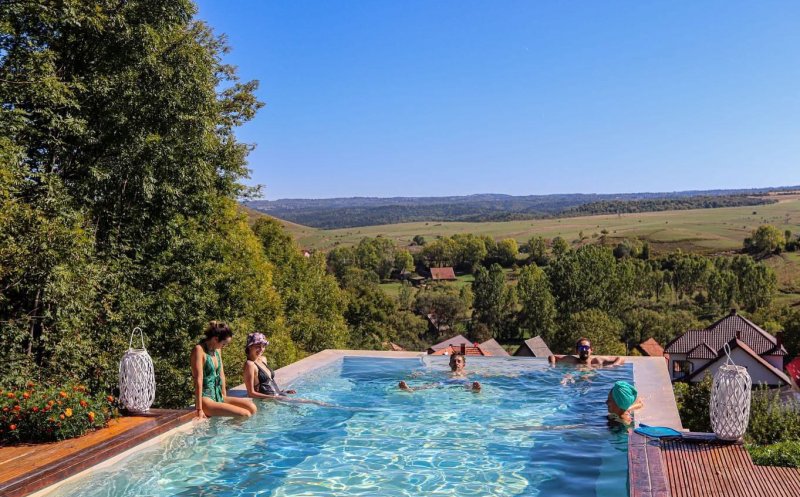 Putem spune că piscina de tip ,,infinity”, de la pensiunea ,,Mărgău Apuseni” este cât se poate de instagramabilă