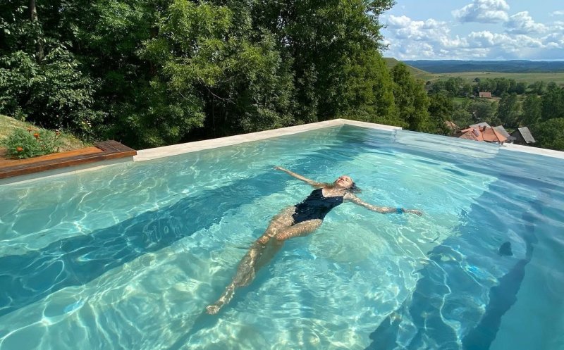 Foto Piscină ca în Bali, în județul Cluj. Este suspendată la 4m și parcă se unește cu muntele
