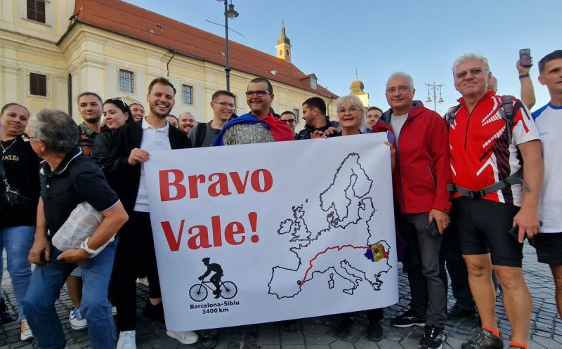 Dacă Paul a ajuns la Cluj în urmă cu trei zile, Valentin Oprişor a sosit la Sibiu, marţi seara, fiind întâmpinat în Piaţa Mare din centrul istoric de familie şi zeci de prieteni, dar şi de biciclişti sibieni.