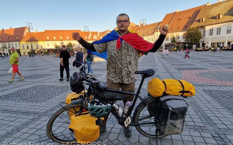 Tânărul care a străbătut atâtea ţări pe bicicletă îşi doreşte ca şi la Sibiu oamenii să pedaleze mai mult.