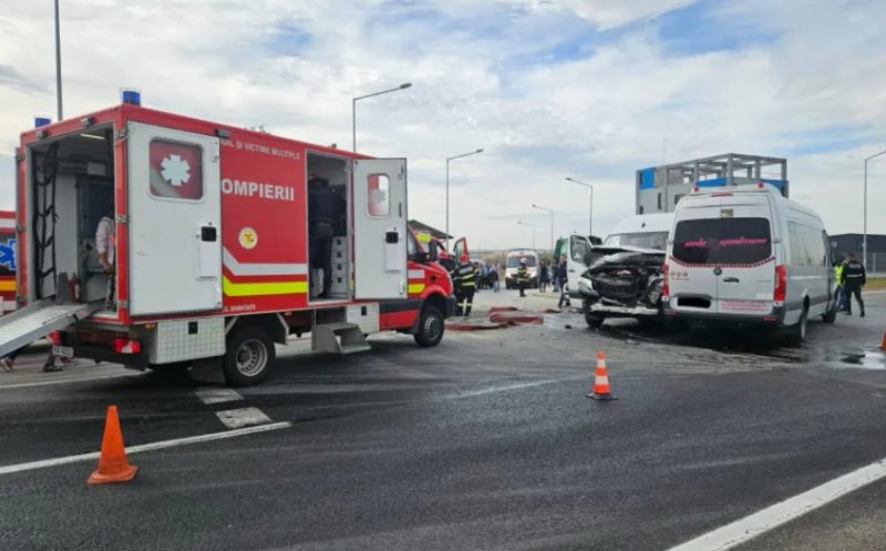 Accident GRAV între două microbuze, în Sibiu. 19 răniți, transportați la spital