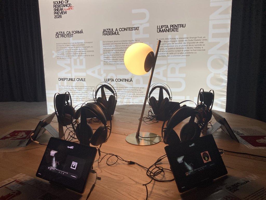 ● Instalația Jazz Around the World - un glob multimedia interactiv, cu 25 de puncte muzicale la care îți poți conecta căștile și descoperi jazzul din fiecare colț al lumii.