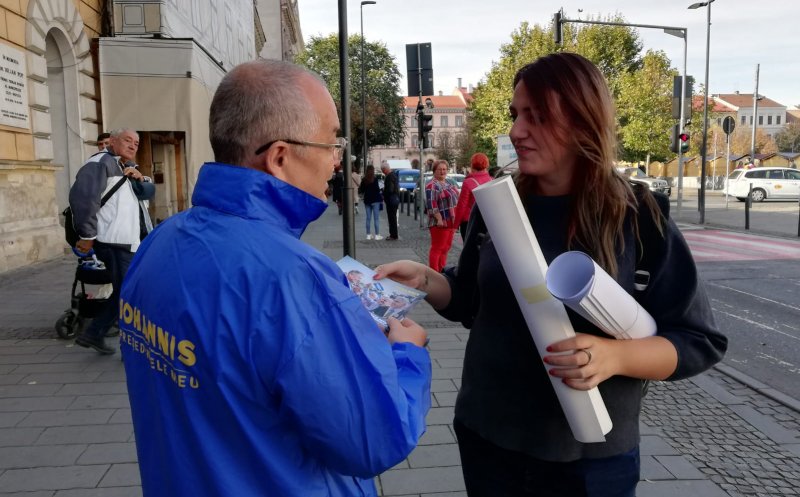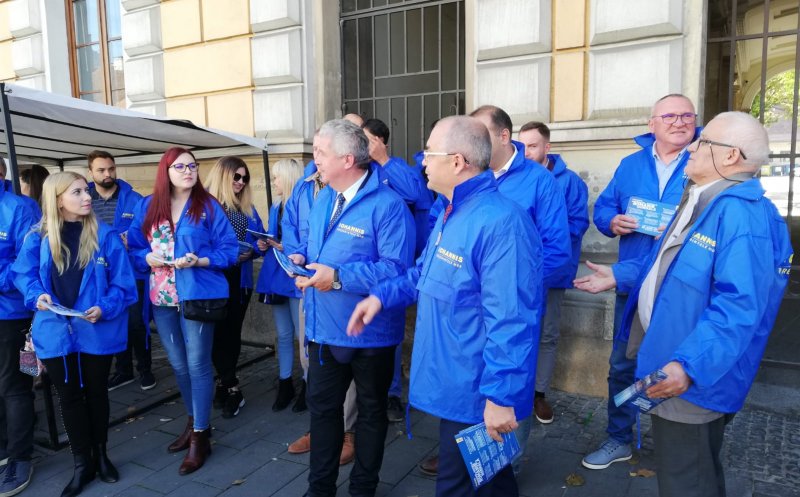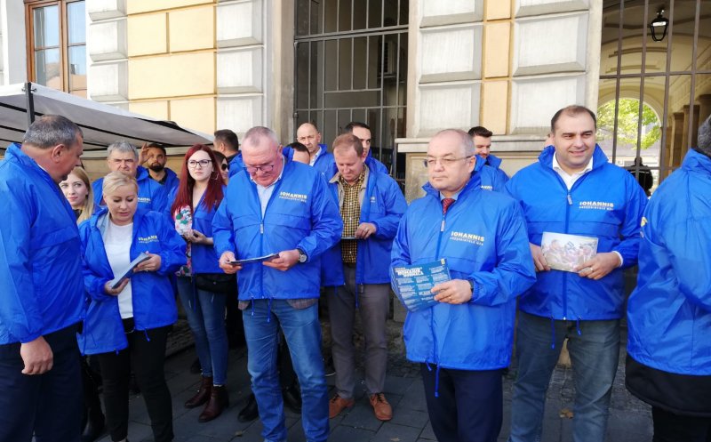 Primarul Emil Boc, preşedintele Consiliului Judeţean, Alin Tişe, liderul PNL Cluj Daniel Buda şi viceprimarul Dan Tarcea, alături de câteva zeci de liberali, au distribuit în centrul Clujului pliante cu programul electoral al candidatului Klaus Iohannis.