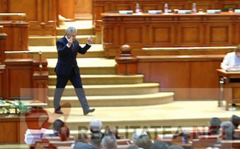 Imaginile din plen l-au suprins pe Florin Iordache în momentul în care se întorcea de la pupitru şi a ridicat ambele mâini cu degetele mijlocii în aer.