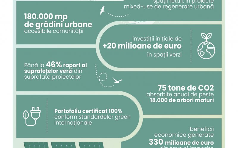 Proiectele IULIUS sunt concepte sustenabile, care integrează grădini ample, aducând natura în mijlocul orașelor, între oameni – 18 hectare de grădini urbane în Iași, Timișoara, Cluj-Napoca şi Suceava, cu 80.000 de arbori și arbuști. Prin conceptele lor, investițiile companiei își aduc aportul nu doar la dezvoltarea urană și economică, ci și din perspectivă culturală și socială, devenind destinații ce oferă experiențe variante, pentru toate vârstele, tot timpul anului – peste 1.000 de evenimente anual, inclusiv ca parteneriate cu mediul artistic și cultural local.
