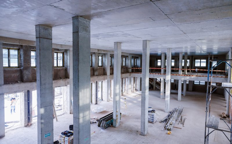 „Structura interioară a fost reconstruită în trei etape, câte o treime din clădire fiind reconfigurată pe rând. Pereții exteriori au fost consolidați prin torcretare – o tehnică de aplicare a betonului pe verticală în straturi subțiri, care asigură stabilitatea zidăriei. În interior, clădirea a fost reconstruită integral, păstrându-se doar pereții exteriori originali. Regimul de înălțime și proporțiile geometrice au fost menținute, și au fost integrate deschideri care permit intrarea luminii naturale în spațiile interioare – o noutate față de configurația originală. Casa scării a fost modernizată complet și dotată cu lift, iar acoperișul a fost refăcut și învelit în tablă, pentru o durabilitate sporită”, a explicat Vlad Samoil, project manager RIVUS.
