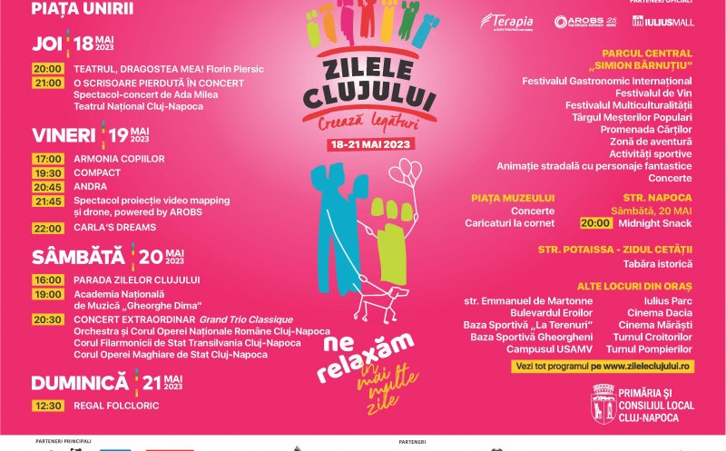 Zilele Clujului au loc în perioada 18-21 mai, eveniment organizat de Primăria și Consiliul Local Cluj-Napoca cu sprijinul partenerilor: