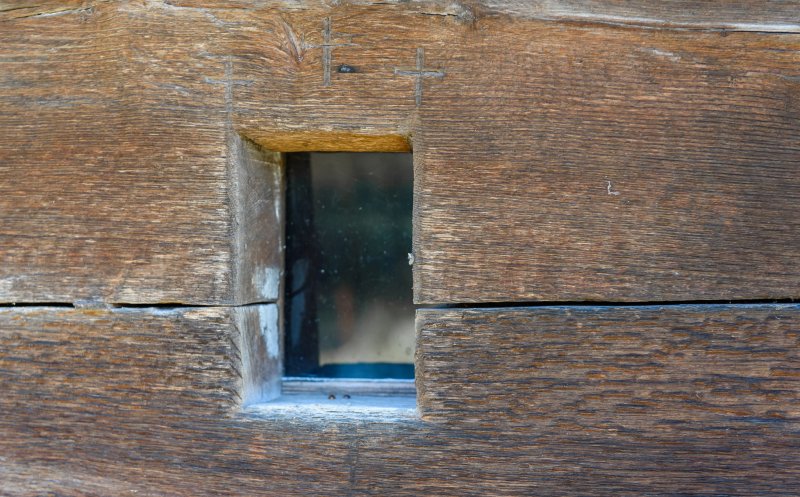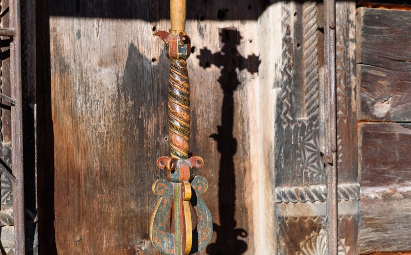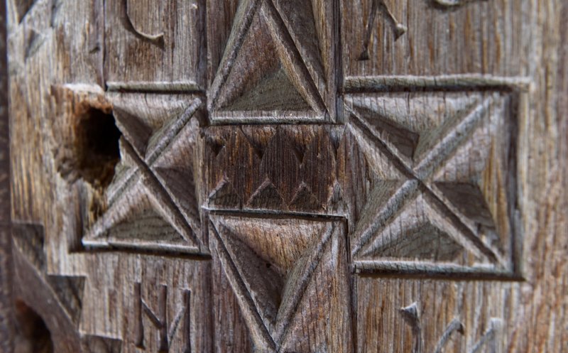 Meșterii, rămași anonimi, și-au dovedit talentul și în decorarea ancadramentelor de intrare în pronaos și naos, pe care au cioplit numeroase motive decorative, dintre care se remarcă rozetele morișcă, torsada și motivele geometrice. În acest fel, aceste intrări se constituie în adevărate praguri de trecere, încărcate de simboluri, potențate vizual de pictura care s-a mai șters în timp. Pe foaia ușii, la intrare, umbra pictată a unui Arhanghel Mihail, șters de vreme și de vremuri, întâmpină credinciosul.