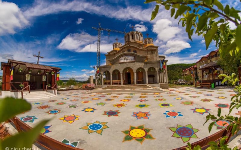 Astfel, preotul Ovidiu Ciprian Marțiș a desenat flori colorate, la distanțe de 1,5 meri, pe toată suprafața curții bisericii.