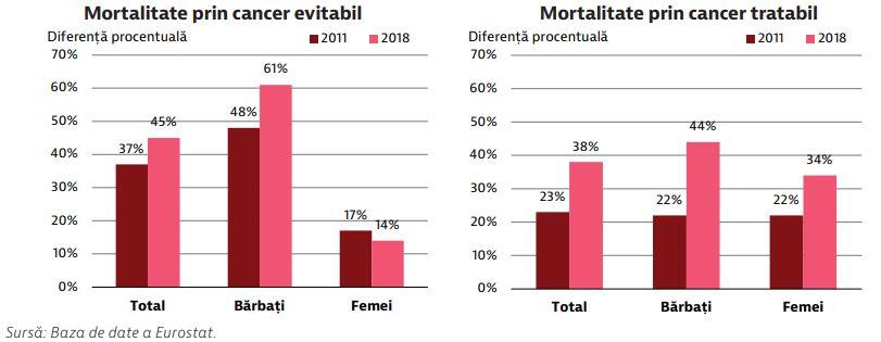 mare în România decât în UE în anul 2019), cât și mortalitatea prin cauze tratabile (cu 44 % mai mare în România decât în UE). La femei, creșterea mortalității a fost constatată doar în cazul mortalității prin cancer tratabile.