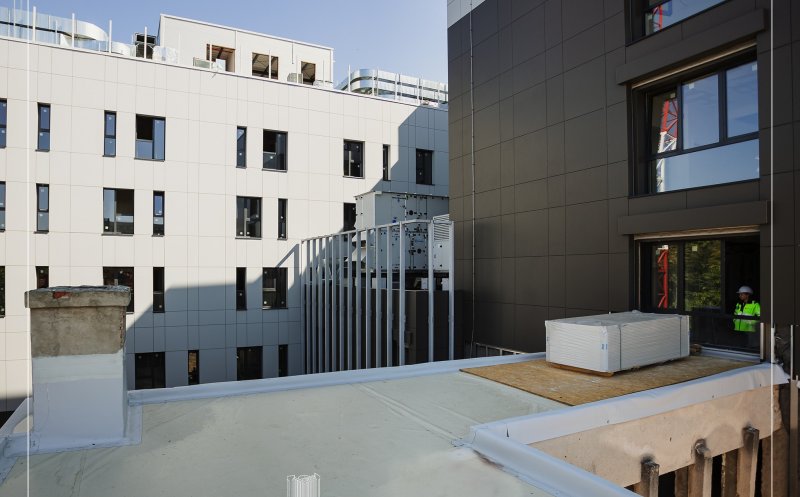 Lucrările sunt executate de Erbașu COnstrucții: ''Până în acest moment, la clădirea nouă s-au finalizat suprastructura, hidroizolația și pavajul acoperișului. În interior, se lucrează la compartimentările din gips-carton și la instalațiile de pe fiecare etaj. Șapa de nivel a fost turnată pe toate etajele, inclusiv în casele de scară, iar acum se aplică șapa autonivelantă. La etajul 3, s-au montat pereții curati, consolele chirurgicale și de anestezie pentru primele 4 săli de operație. De asemenea, s-a finalizat montarea tâmplăriei exterioare și a celor două montcharge-uri, iar în prezent se lucrează la montarea lifturilor de persoane. În corpul existent, tavanele și sapele autonivelante sunt finalizate, iar pereții sunt pregătiți pentru aplicarea lavabilei. Totodată, a fost montat covorul PVC în băile de pe fiecare etaj. La exterior, se lucrează la zona de acces și la fațada ventilată, care este realizată în proporție de 85%''.