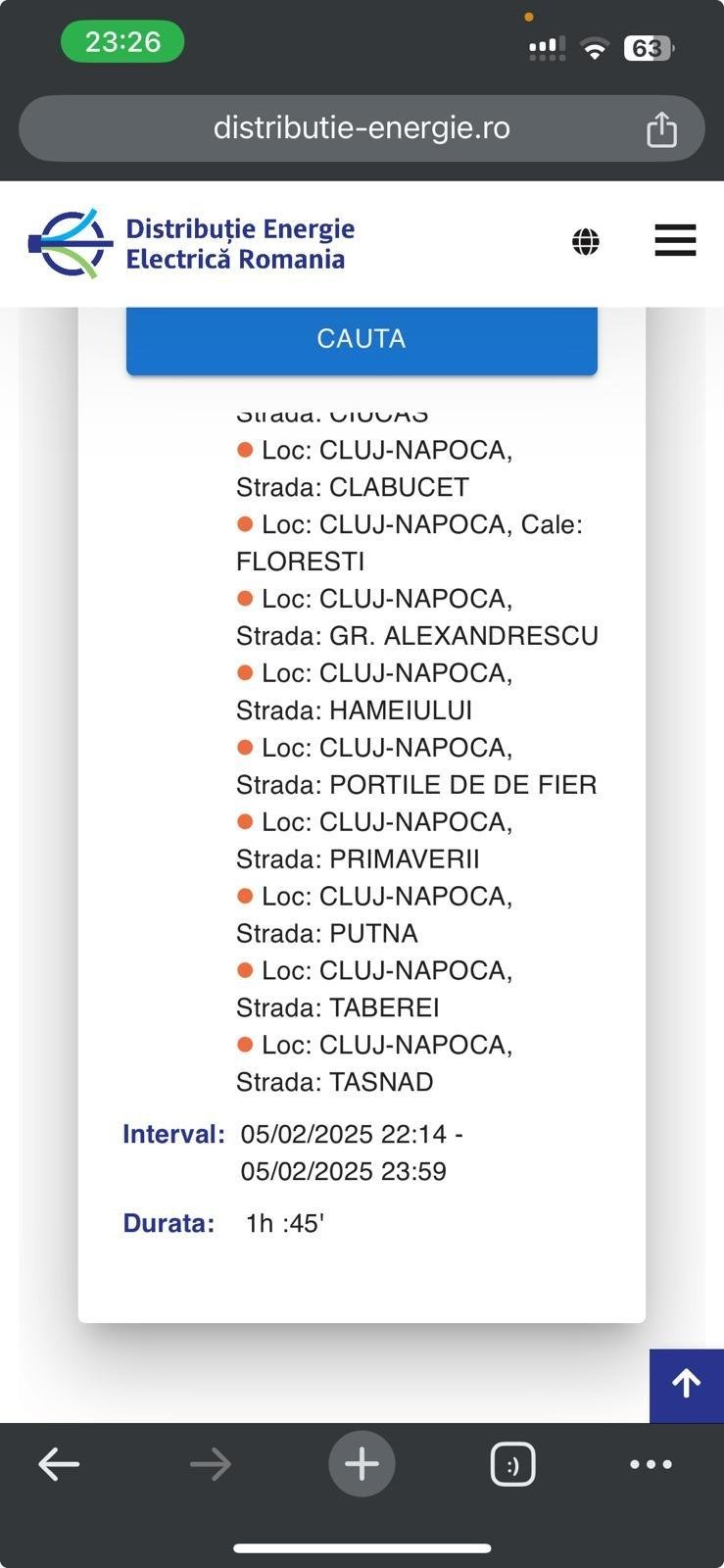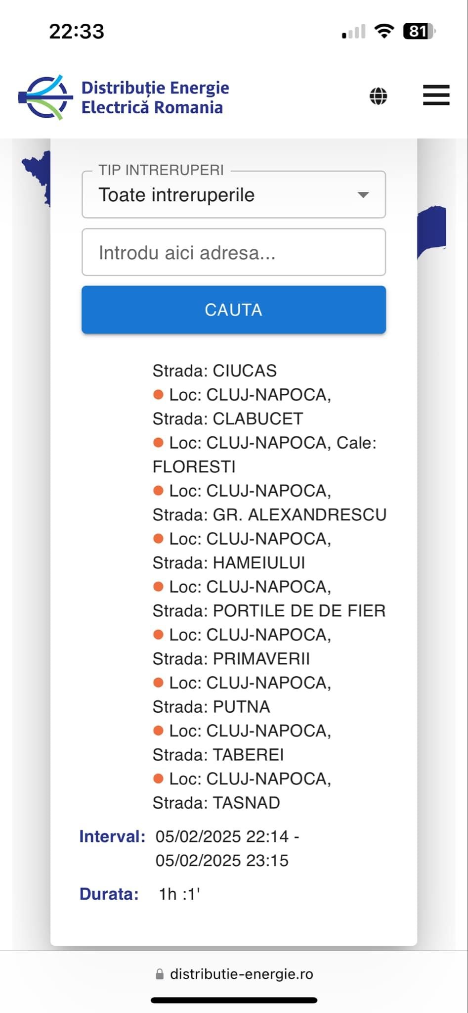 - Bună seara. Nici pe str. Parâng nu este curent de la ora 22:10