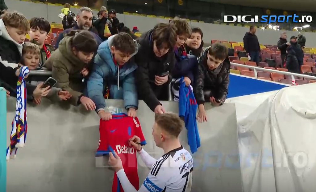 După fluierul final, Gheorghiță a mers mai întâi să salute niște apropiați, iar după ce a revenit la nivelul gazonului a fost rugat de mai mulți copii să semneze inclusiv tricouri și fulare cu FCSB. Fotbalistul nu i-a refuzat pe cei mici, a semnat tot ce i-a fost înmânat și a făcut și poze cu suporterii roș-albaștrilor.