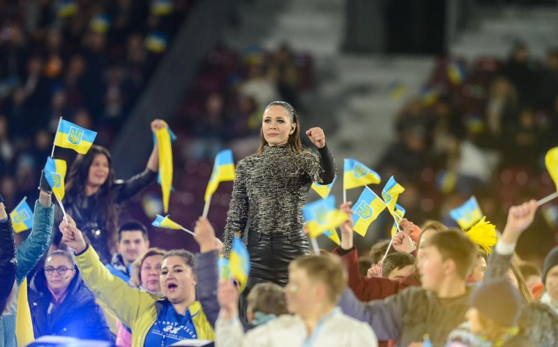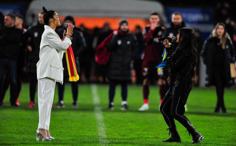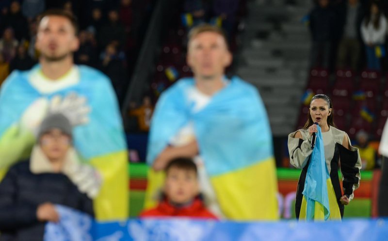 Înaintea partidei, pe o scenă în forma hărţii Ucrainei, amplasată la mijlocul terenului şi pe care se aflau 200 de refugiaţi ucraineni, mai multe artiste din ţara vecină, între care Ruslana, fostă câştigătoare a concursului Eurovision, au interpretat câteva melodii.
