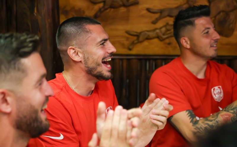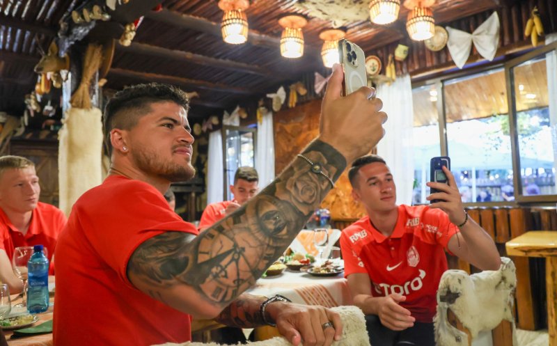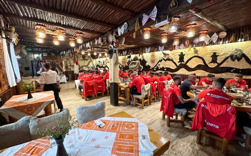 În fotografiile publicate pe pagina de facebook din cantonamentul „low-cost” se remarcă Burcă și Yuri care au dat tonul petrecerii în restaurantul cu specific românesc.