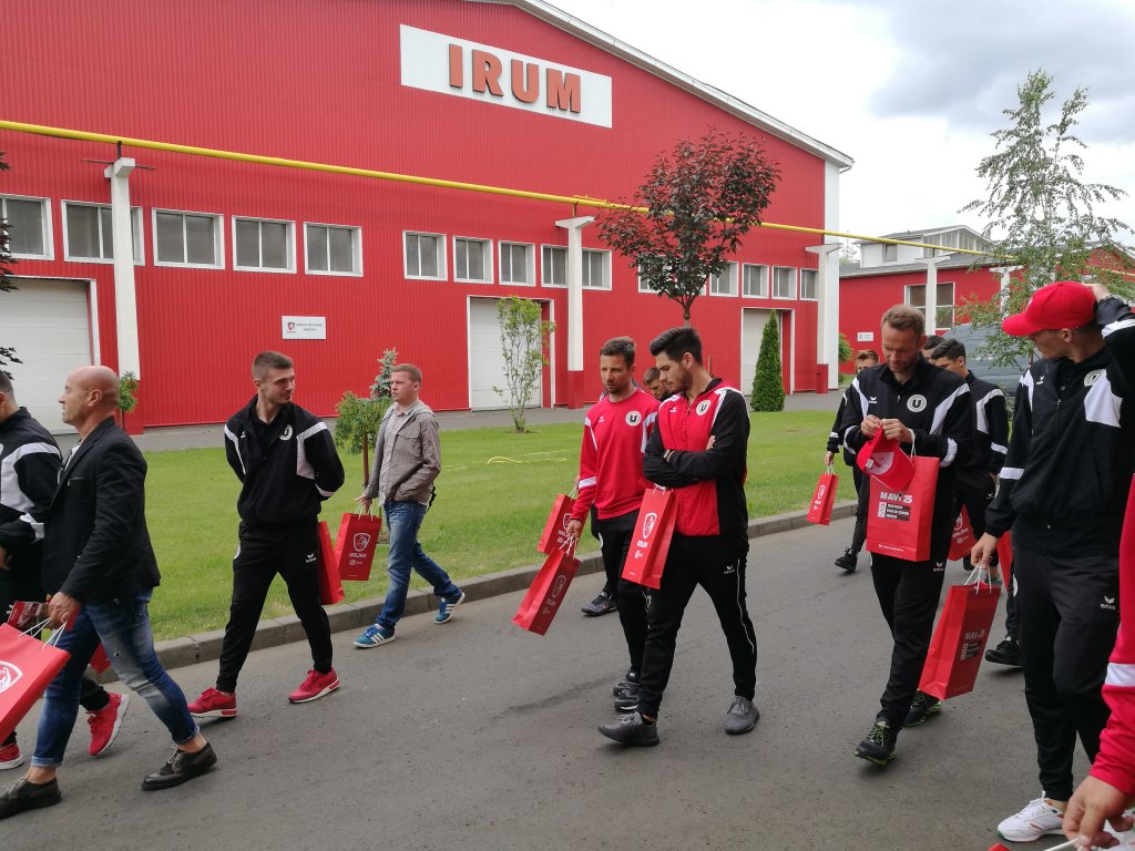 „Şepcile roşii” au plecat la Reghin pregătiţi pentru un meci cu iz de vacanţă. Înainte de a ajunge la stadion, băieţii lui Adi Falub s-au oprit la fabrica IRUM, partener important al Universităţii în sezonul în care clubul studenţesc a reuşit să se întoarcă în Liga 2, după doi ani petrecuţi în eşaloanele patru şi trei ale fotbalului românesc.