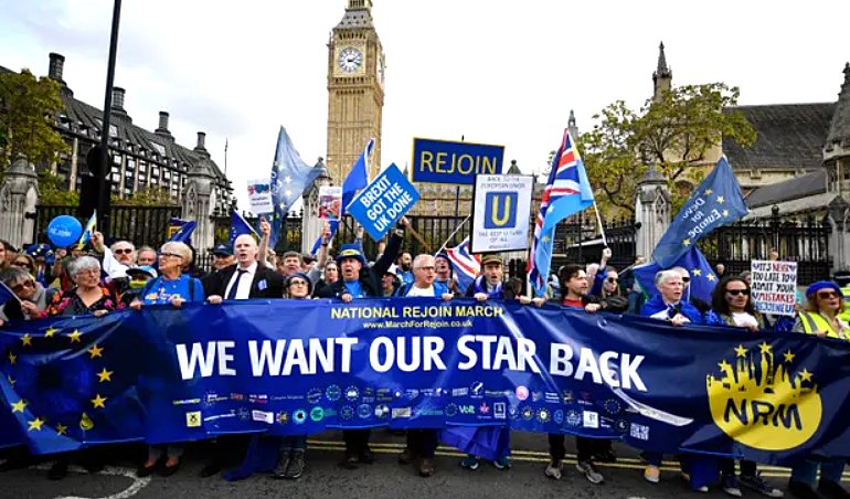 Au fost mii de manifestanţi, sâmbătă, în centrul Londrei într-un protest anti BREXIT, cerând ca Regatul Unit să revină în Uniunea Europeană.