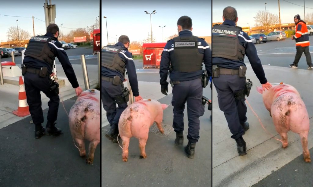 Imaginile zilei au venit din Franţa, unde jandarmii au confiscat şi au luat sub "escortă" porcul unor români, chiar înainte ca animalul să fie sacrificat şi să fie transformat în cârnaţi, jumeri şi caltaboş.