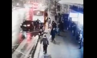 Tinerii s-au distrat la o baie într-un ciubăr amplasat în Piața Unirii, chiar la intrarea de la Târgul de Crăciun din Cluj-Napoca.