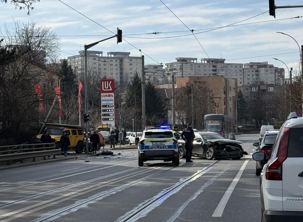 Un accident rutier s-a produs, în cursul zilei de joi, 20 februarie, în apropiere de Sala Sporturilor Horia Damian din Cluj-Napoca.