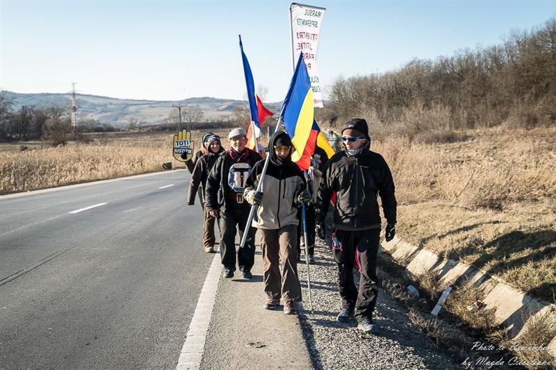 "Marşul Speranţei" a încheiat cu succes prima etapă. Grupul de persoane care merge, pe jos, de la Cluj la Bucureşti, pentru a participa la protestul din 20 ianuarie împotriva modificărilor legilor Justiţiei, a parcurs 32 km.