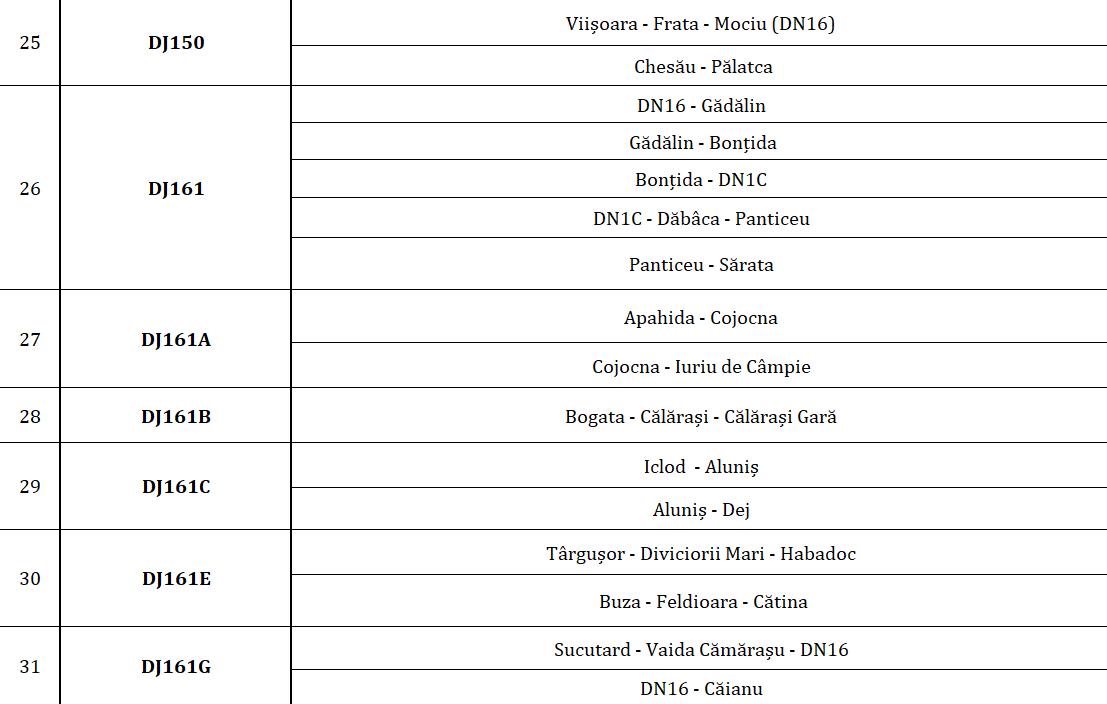 - DJ108N Aghireșu - Limita cu județul Sălaj (2,8 km);