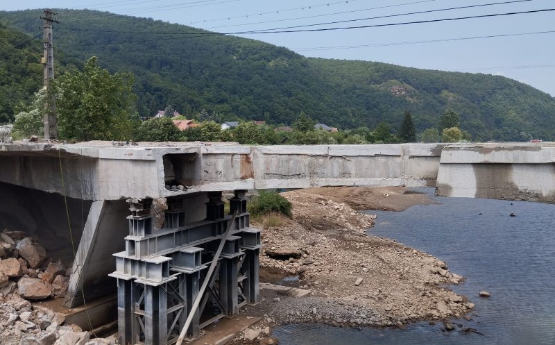 Foto A început demolarea vechiului pod din Someșul Rece! Pe unde se va circula până când va fi gata cel nou